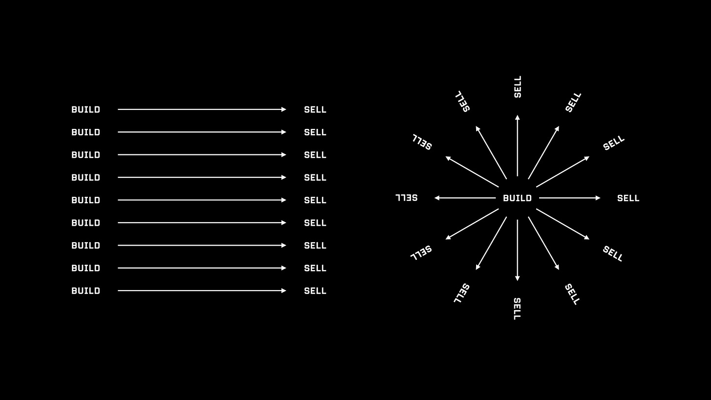 In my ideal reality, my income is primarily derived from the results of yesterday. Jack Butcher would call this Build Once, Sell Twice. Â Â